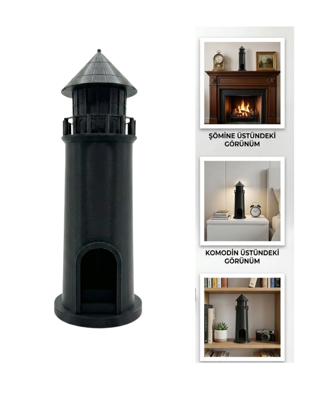 3D Siyah Deniz Feneri Dekoratif Obje Modern Ev ve Ofis Aksesuarı