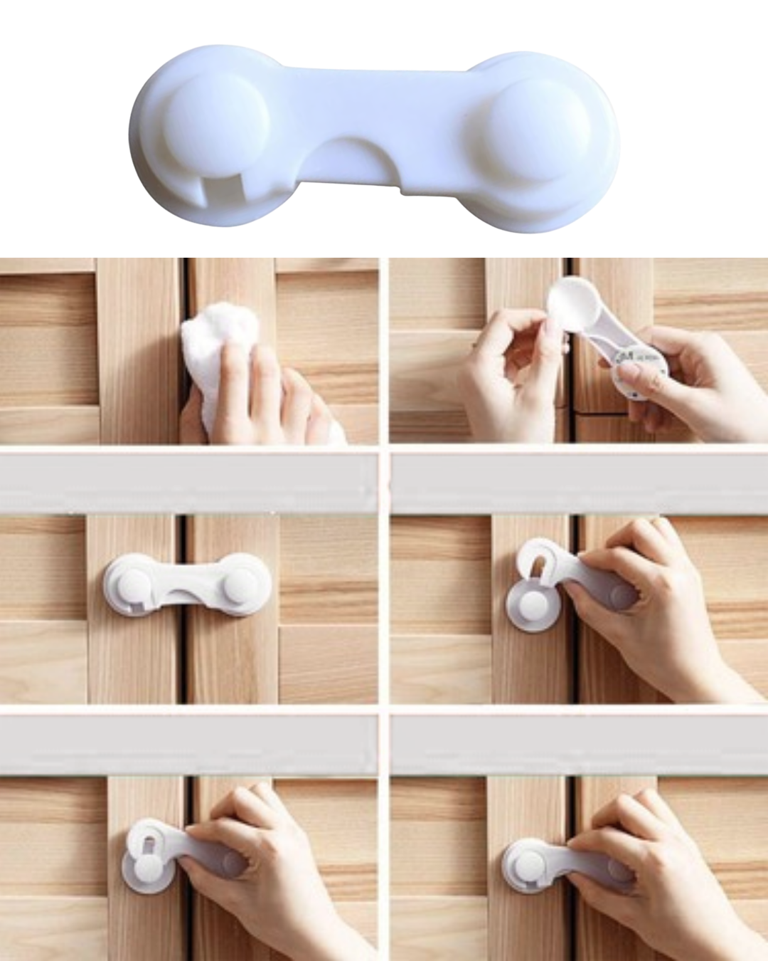 Çocukların dolap kapaklarını açarak tehlikeli eşyalara ulaşmasını önlemek için tasarlanan 4 adet dolap emniyet kilidi, ev güvenliğini artırmaya yardımcı olur. Kullanımı son derece basit olan bu ürün, güçlü yapışkan sistemi sayesinde yüzeye sıkıca tutunur. Montaj sırasında delme veya vida kullanımı gerekmediği için dolaplara zarar vermez.