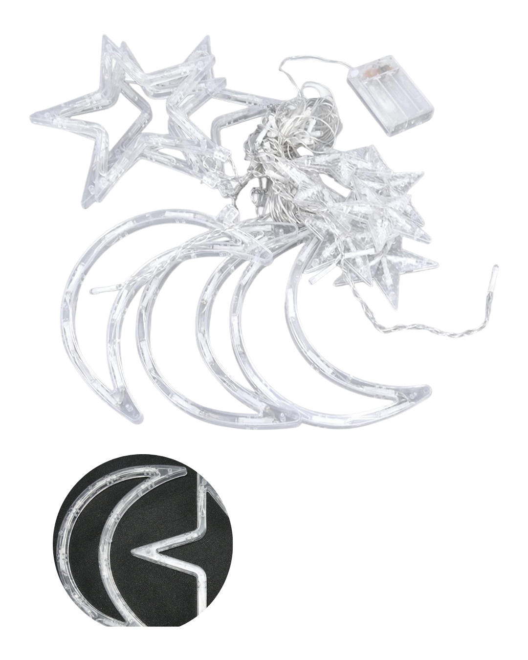 Ramazan ayının huzurlu ve sıcak atmosferini yansıtan bu ay yıldız LED perde ışık, dekoratif aydınlatma arayanlar için mükemmel bir seçimdir. Geniş kullanım alanı sayesinde ev, balkon, bahçe ve organizasyon dekorlarında rahatlıkla kullanılabilir. İki farklı ışık modu ile ortama göre ayarlanabilir aydınlatma sağlar. Hem günlük kullanım hem de özel gün süslemeleri için estetik ve pratiktir.
