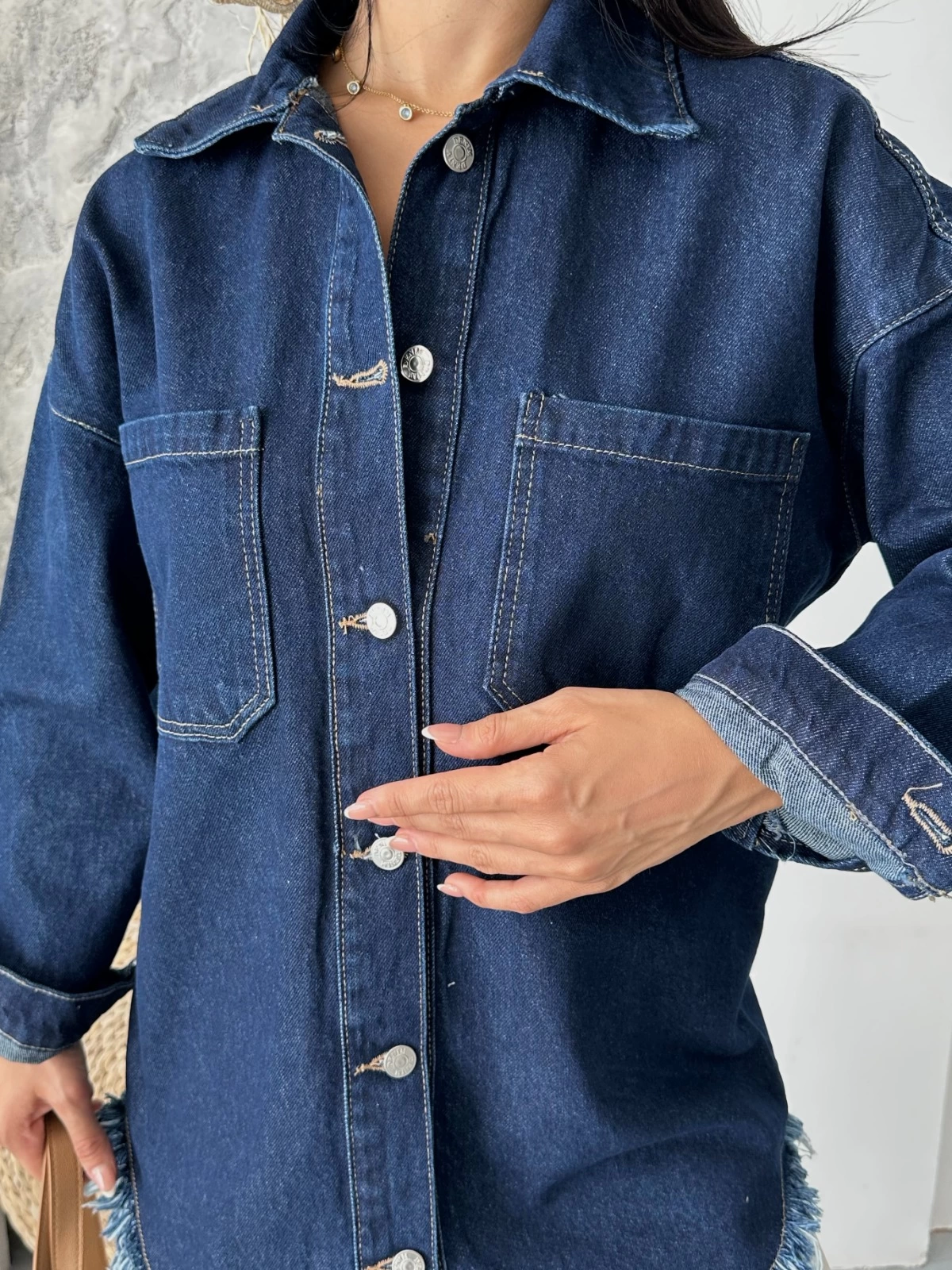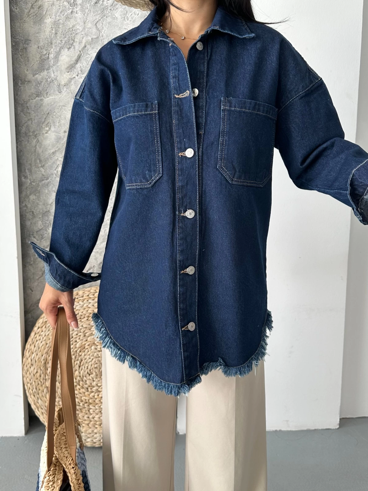 Bu şık ceketi günlük giyimde jean pantolonlarınızla, eteklerinizle veya elbiselerinizle kombinleyerek farklı tarzlar yaratabilirsiniz. Farklı beden seçenekleri ile sunulan cepli püsküllü kar yıkama kot ceket koyu mavi D2515, tarzınızı tamamlamanızı sağlayacak!