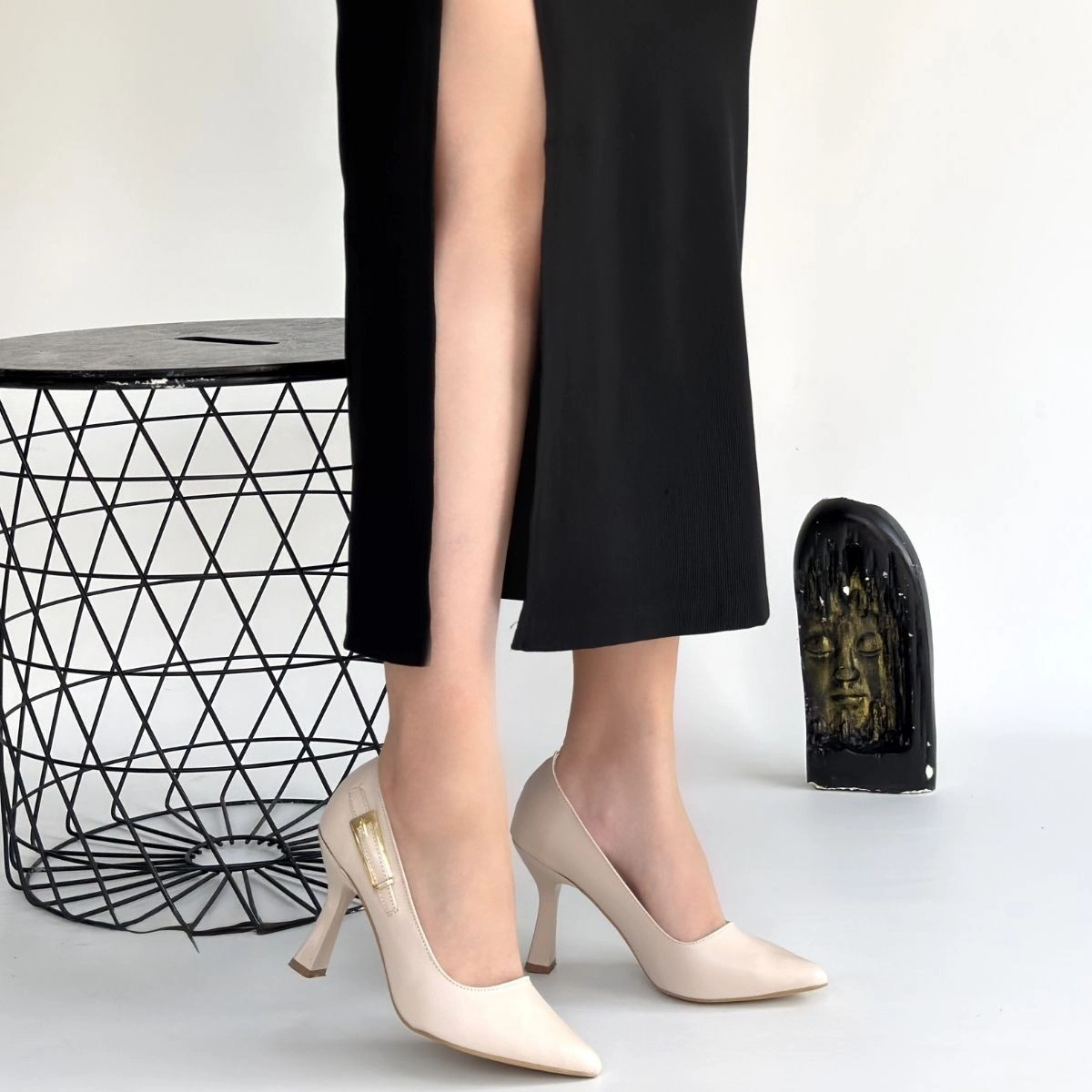 Cerin Bej Cilt Topuklu Ayakkabı