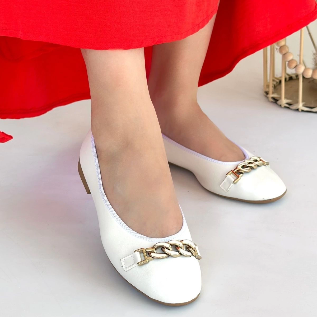 Cleo Beyaz Cilt Babet Ayakkabı