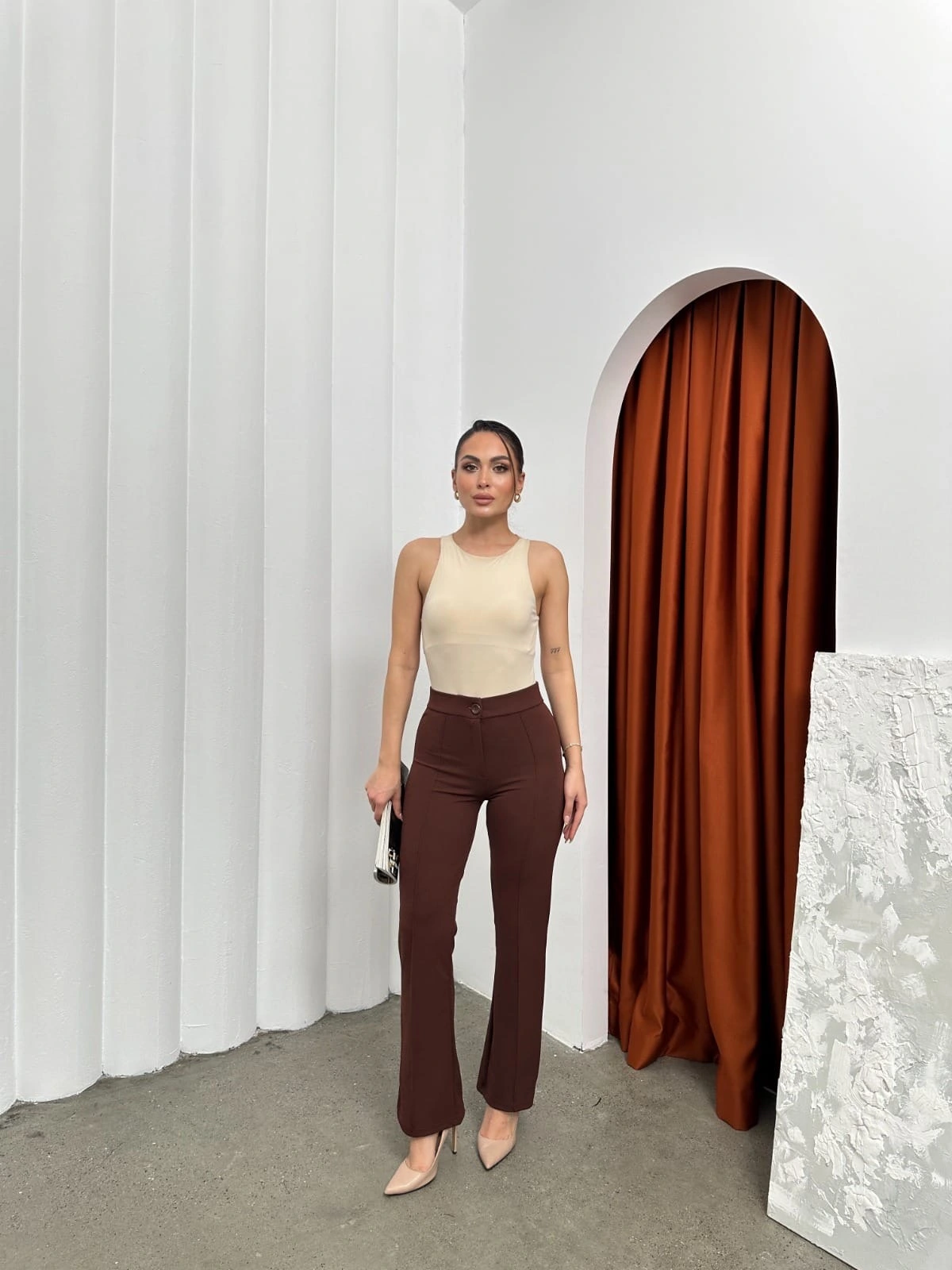 Şık detaylar, konforlu kesim ve yüksek kaliteyi bir arada sunan Düğmeli Palazzo pantolon kahve p170091’e hemen sahip olun!