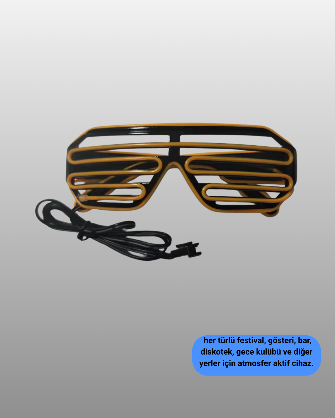 LED ışıklı gözlük, gece eğlencelerinin vazgeçilmez aksesuarlarından biridir. Renkli LED detayları sayesinde bulunduğunuz ortamda enerjik ve dinamik bir görünüm oluşturur. Eğlencenin ruhunu yansıtan tasarımıyla dikkat çeker.
