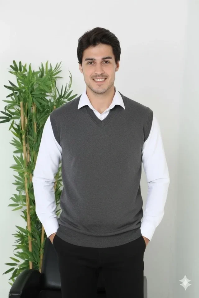 Erkek V Yaka Kolsuz Süveter Triko Kazak Yumuşak Dokulu Pamuklu Ince Dokuma Regular – Füme