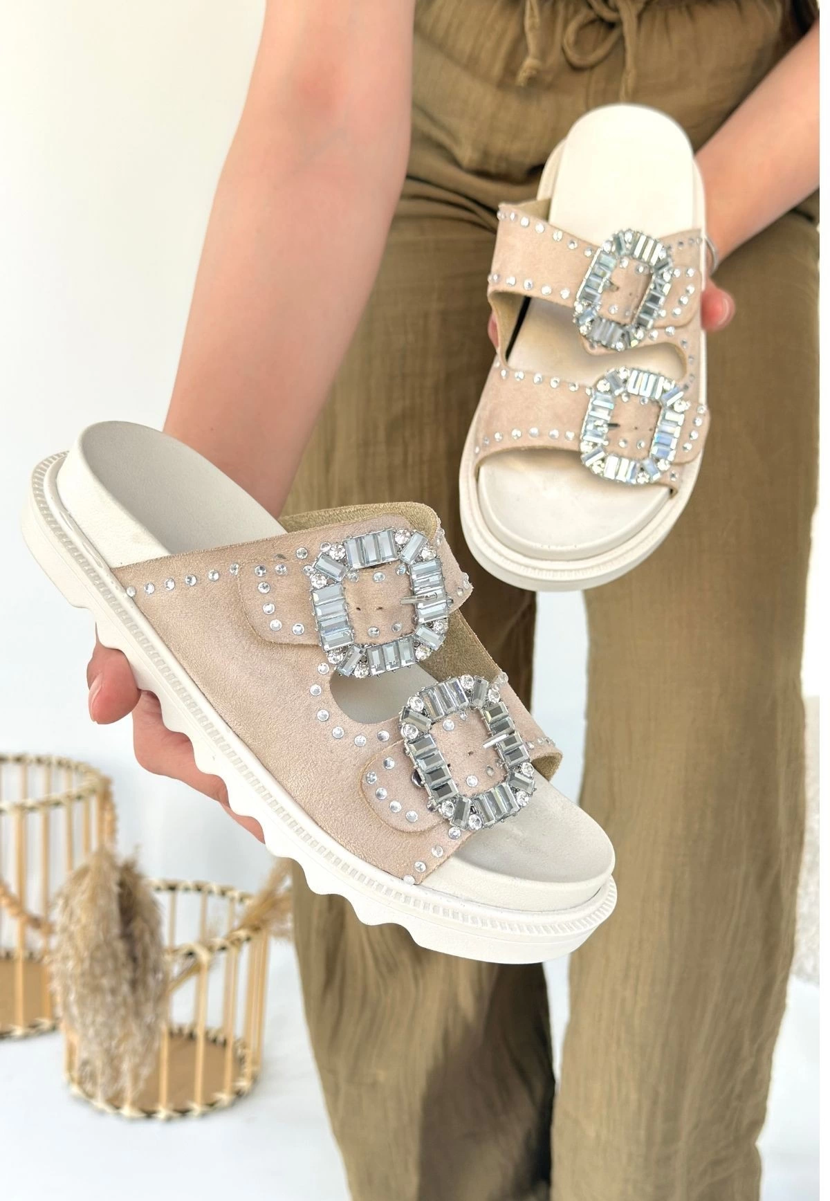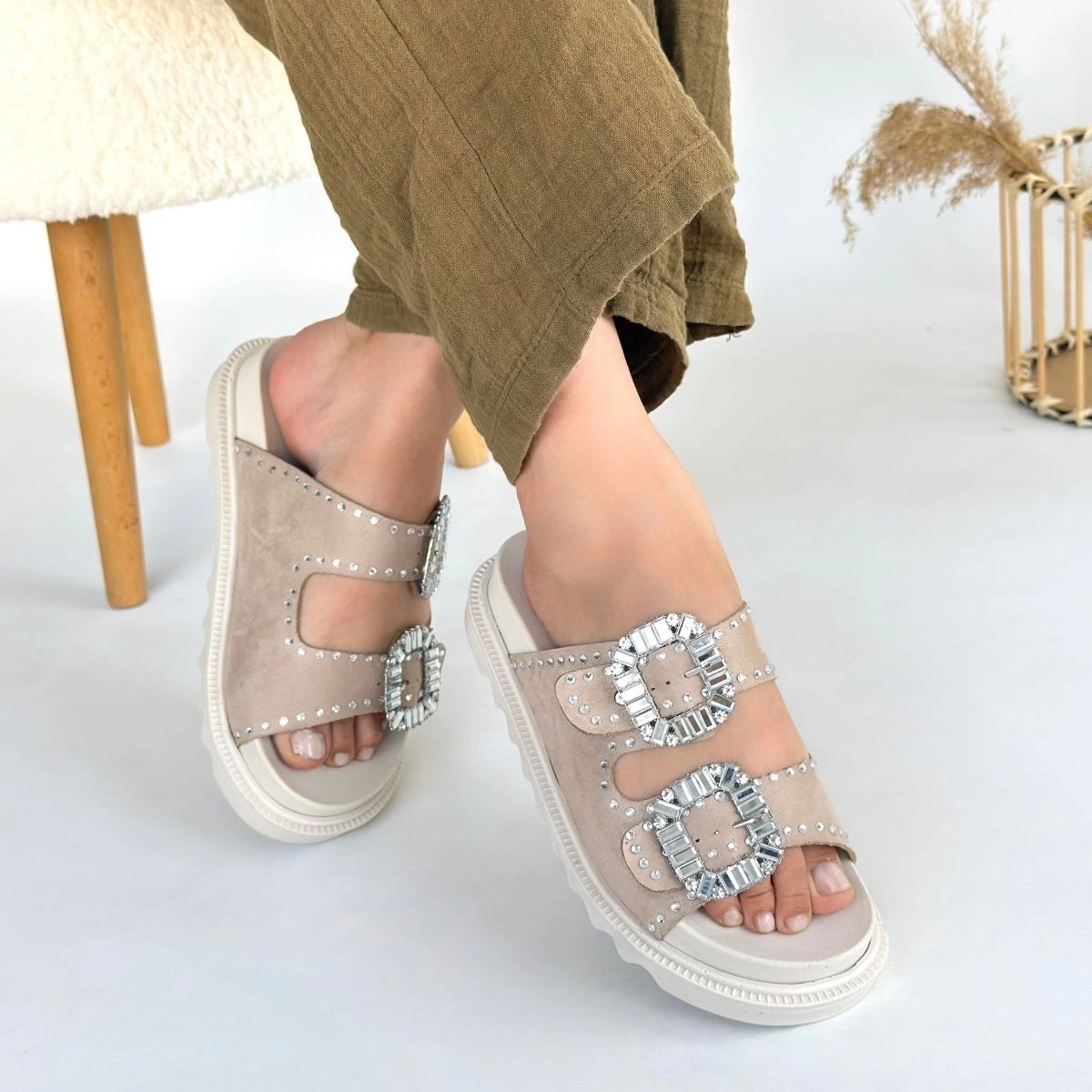 Juana Bej Nubuk Taşlı Terlik