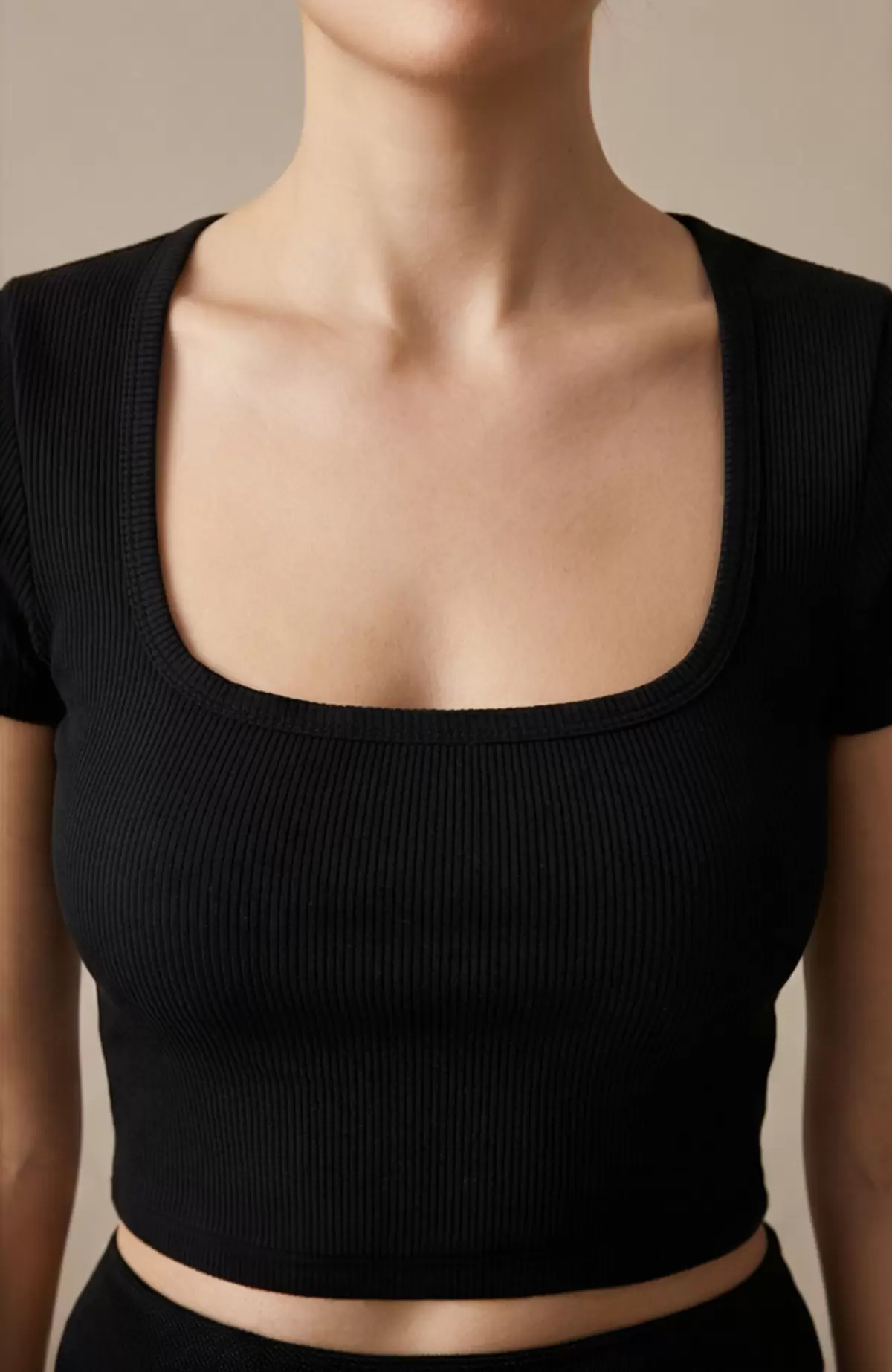 - Düz Yaka Kaşkorse Crop Top