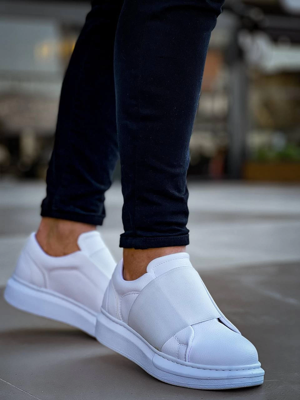 KB-040 Kuback Beyaz Cilt Lastikli Günlük Erkek Ayakkabı
