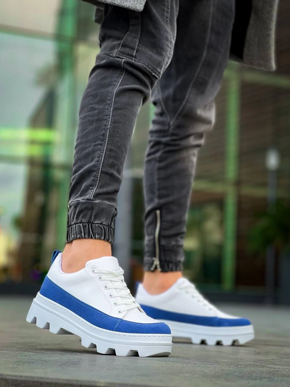 KB-056 Kuback Beyaz Mavi Detaylı Beyaz Yüksek Taban Günlük Spor Ayakkabı