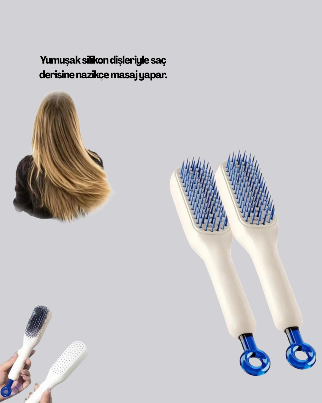 Kendini Temizleyen Ergonomik Saç Tarağı – ABS Gövde, Silikon Diş