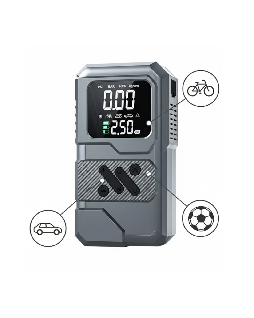 Bu taşınabilir akü takviye ve hava kompresörü, araç kullanıcılarının günlük ihtiyaçlarını ve acil durum senaryolarını düşünerek tasarlanmış çok amaçlı bir üründür. 12.000 mAh kapasiteli bataryası, hem akü destekleme hem de powerbank fonksiyonu için yeterli enerji sağlar. Kompakt tasarımı sayesinde araç bagajında, torpido gözünde veya evde kolayca muhafaza edilebilir.