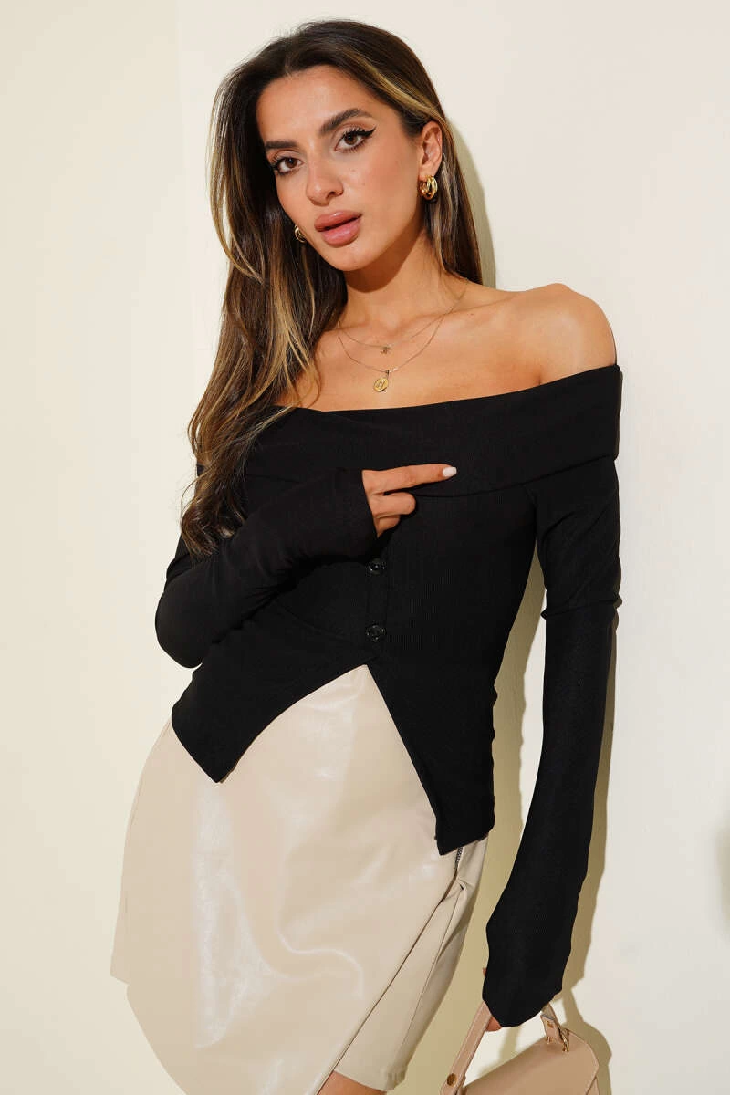 Madonna Yaka Düğmeli Bluz siyah t4329