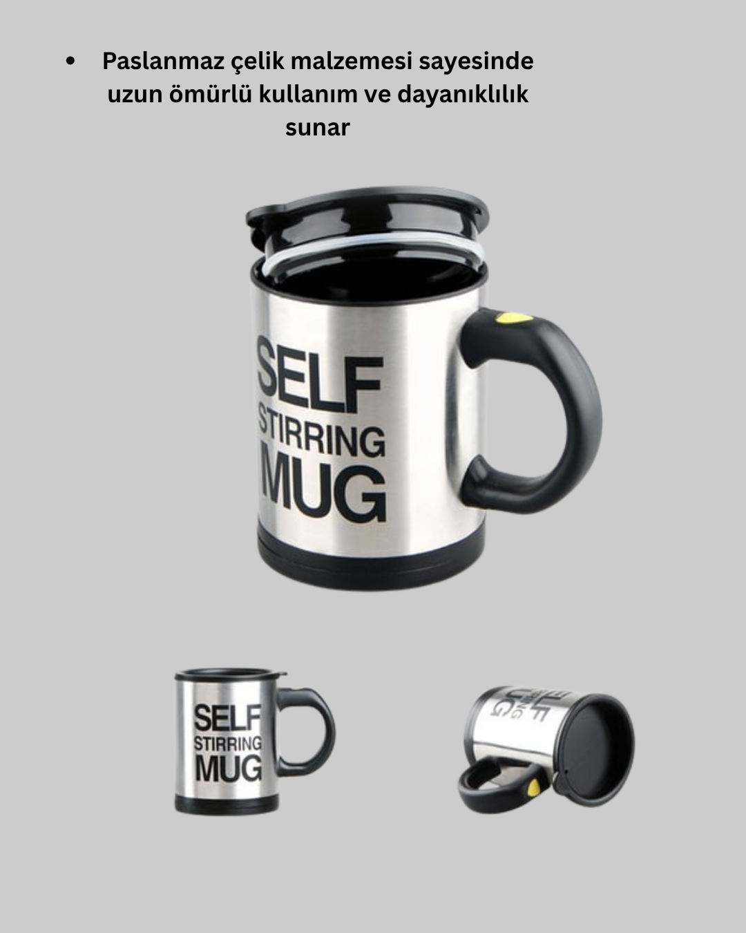 Günlük yaşamınızı kolaylaştıran otomatik karıştırma özellikli akıllı kupa, içecek hazırlama deneyimini daha hızlı, pratik ve eğlenceli hale getiriyor. Yüksek kaliteli paslanmaz çelik malzemesi, uzun ömürlü kullanım sağlarken ısı yalıtımlı yapısı sayesinde içeceğinizi ideal sıcaklıkta tutar.