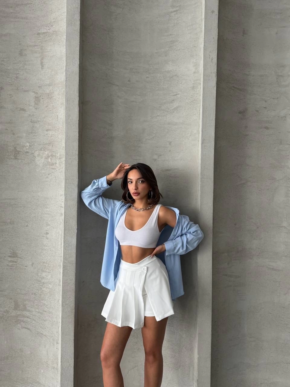 Bu beyaz piliseli düğmeli şort etek, yaz aylarında şıklığı ve rahatlığı bir arada arayan kadınların vazgeçilmezi olacak. İster günlük şıklıkta isterseniz özel bir davette tercih edebileceğiniz bu şort etek, gardırobunuzun en favori parçalarından biri olmaya aday.