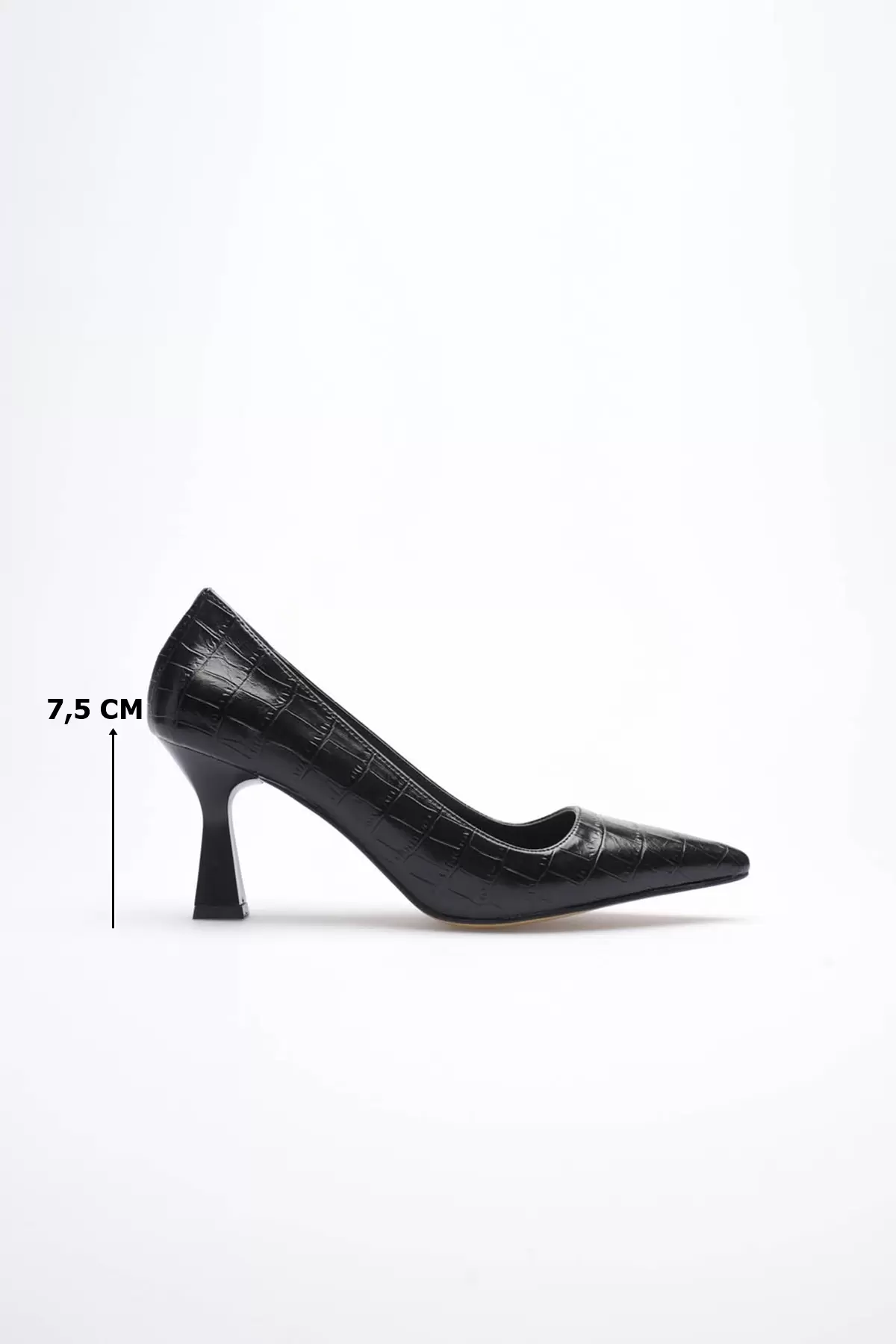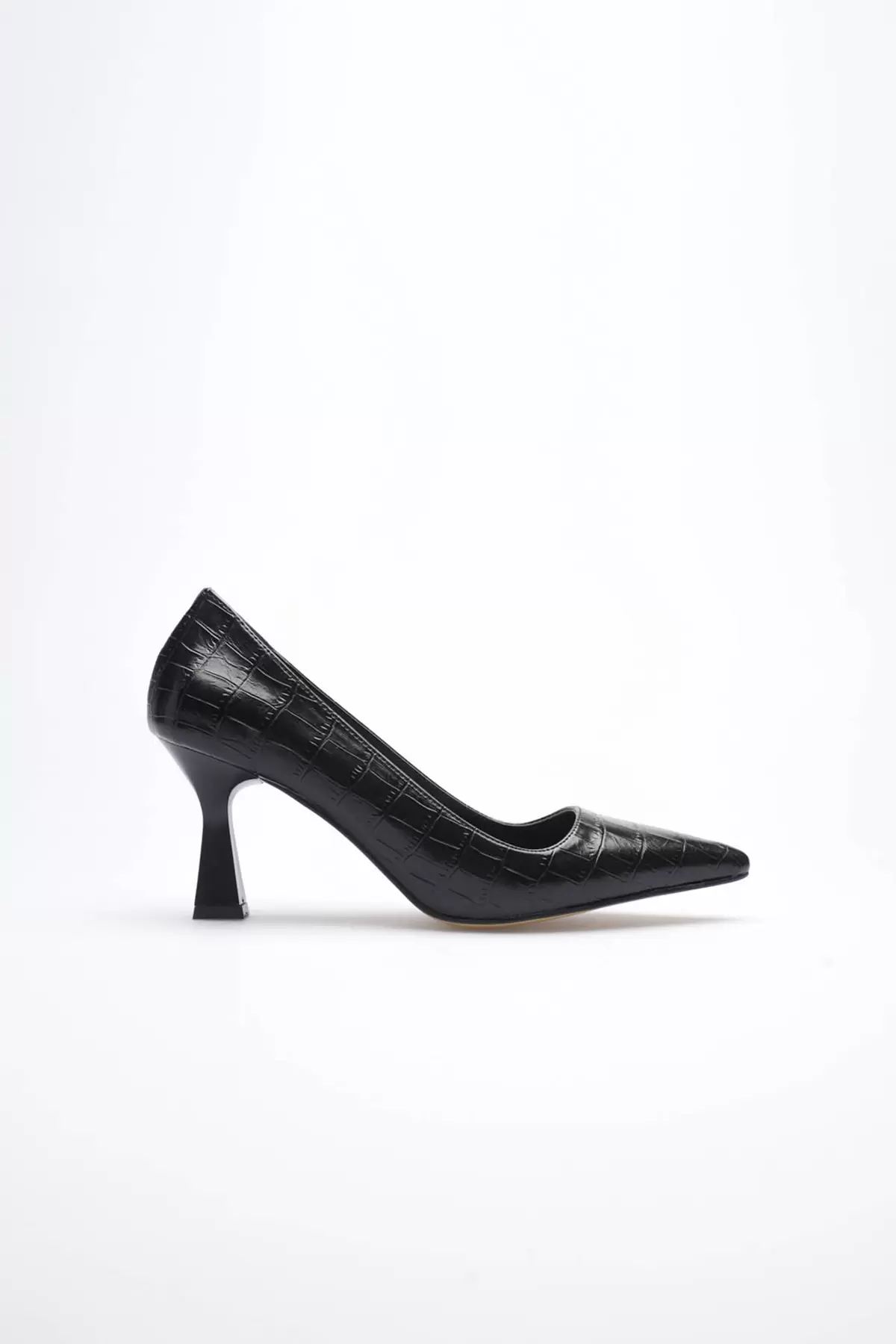 Siyah Kroko Sivri Burun Orta Topuklu Kadın Stiletto TR20MS02F