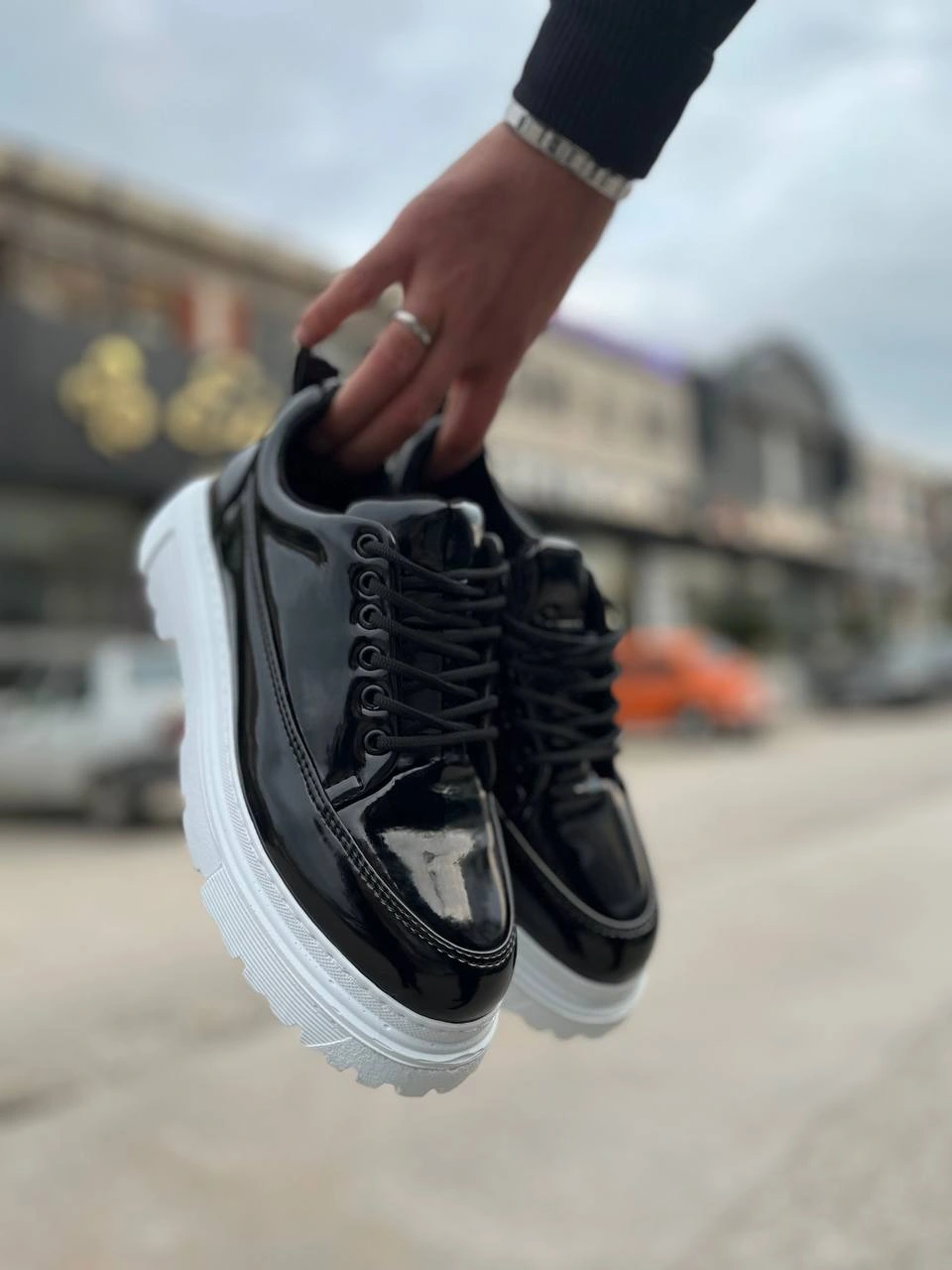 Warte Siyah Deri Bağcıklı Spor Ayakkabı