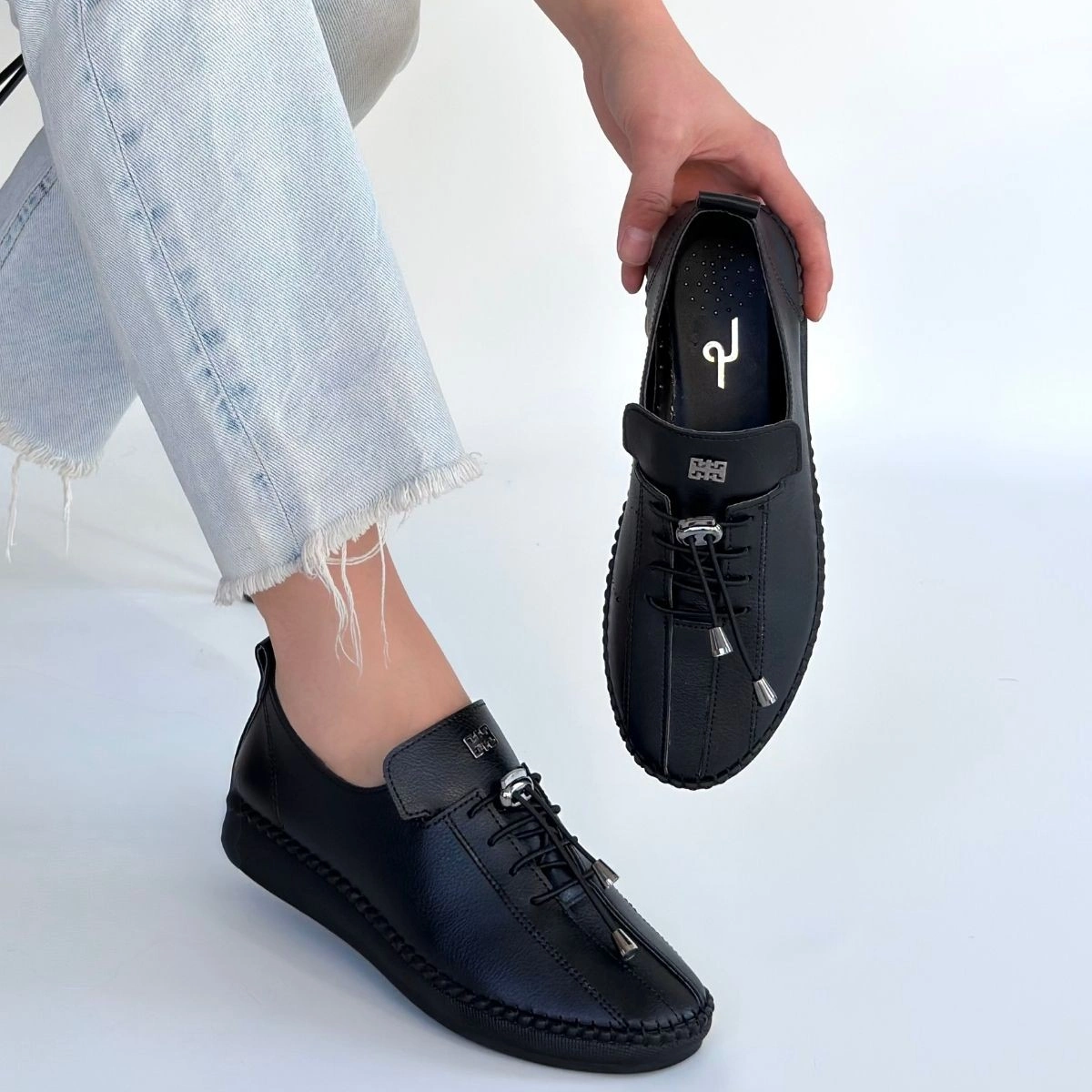 Warte Siyah Deri Bağcıklı Spor Ayakkabı