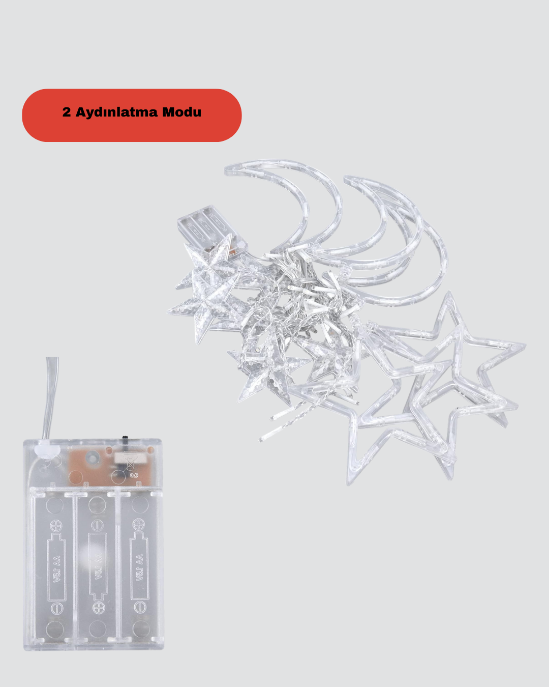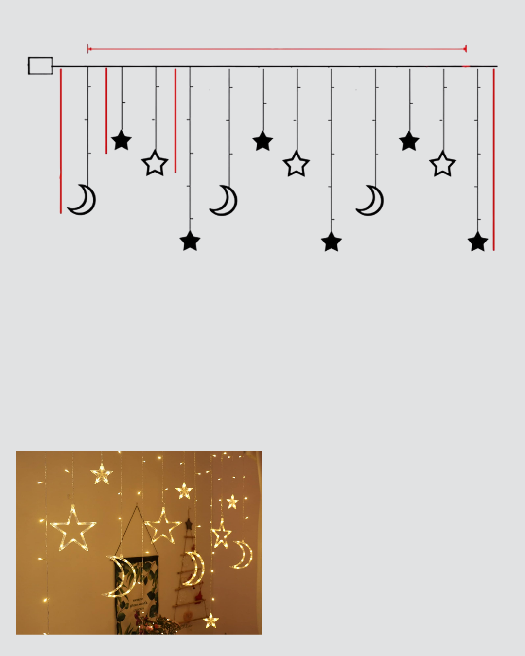Yıldız Ay Tasarımlı Prizli Perde LED Işık İç Mekan Dekoru